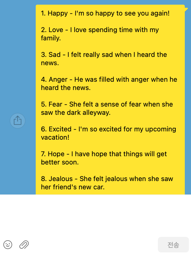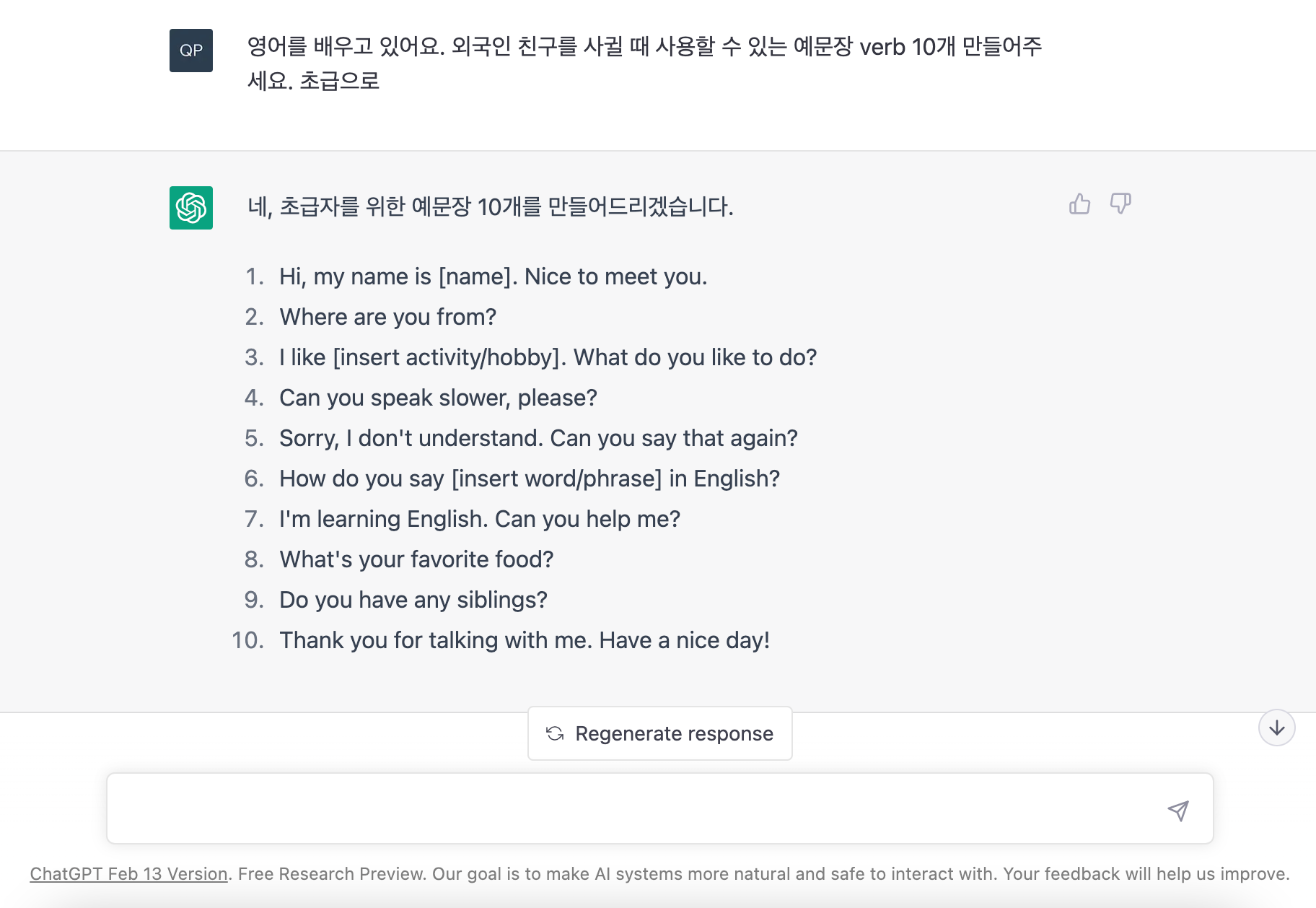 이러한 기능을 활용하여 영어 문장을 생성하고 이를 통해 영어 공부를 할 수 있답니다.
